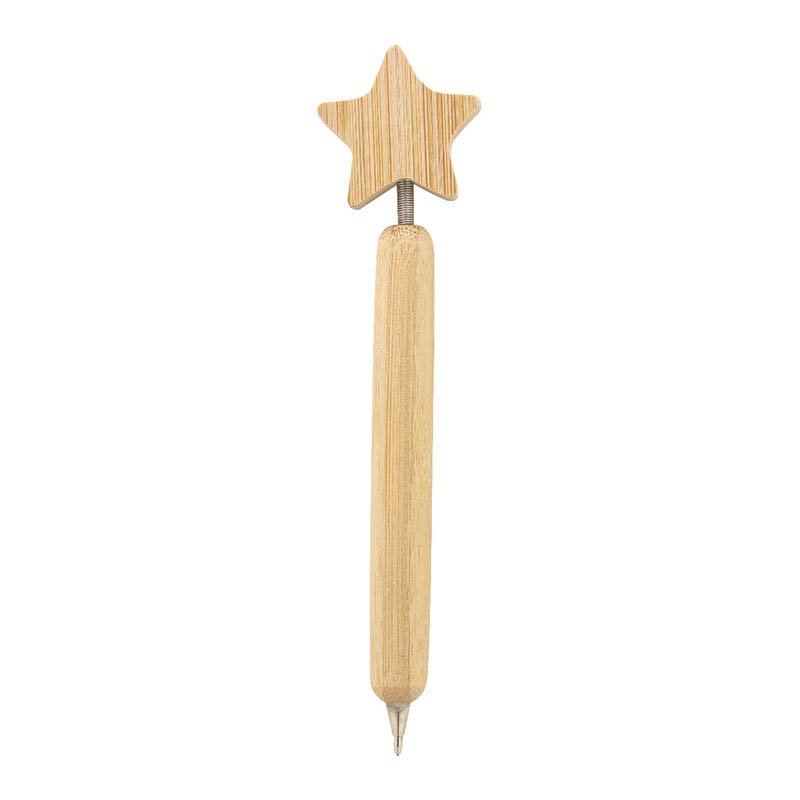 NOVINKA 2025 XMASS. Bambusové guľôčkové pero s vianočným motívom hore. S modrou náplňou.
