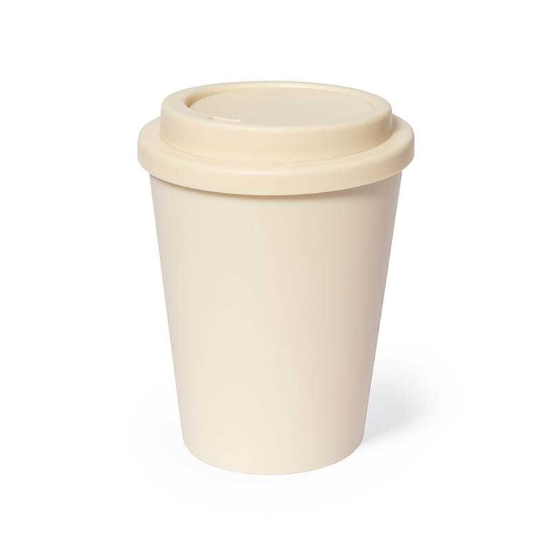 NOVINKA 2025. Insulated table-top cup made of durable, double-walled PP with a capacity of 300ml matte color. Lid with dispenser and easy-opener, BPA free. It is ideal for your desk, table, or any surface where you can enjoy your favorite drink. Food Grade certified, guaranteeing safety when food comes into contact with the material used to manufacture the product. Recycled PP is a recycled and highly recyclable plastic, highly resistant and suitable for a multitude of applications.