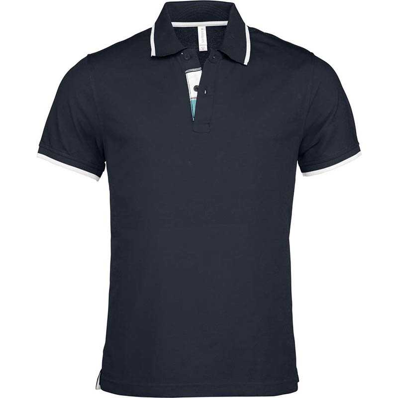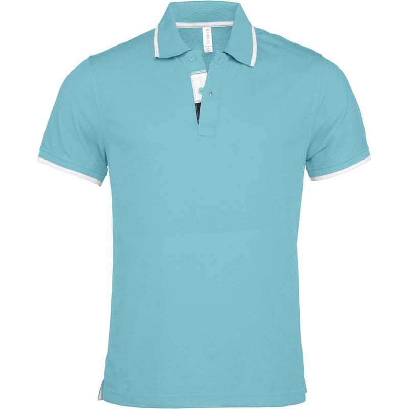 Kvalita.100 % česaná prstencovo spriadaná bavlna.Štýl.Rebrový golier a manžety.Výstužná páska na krku.Krátke rukávy.Kontrastný pruhovaný golier a manžety.3 gombíky tón v tóne.Rovný spodný okraj s kontrastnými bočnými rozparkami.Strihané a šité.Náhradný gombík na vnútornom šve.