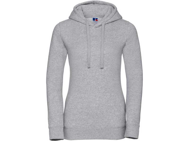 Ladies fit. Double fabric hood with topstitch detail. Flat lace drawcord with buttonhole eyelets. Taped back neck. MP3 earphone access. Kangaroo pocket with bartacks. Front facing should