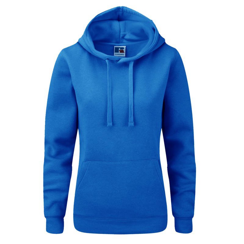 Ladies fit. Double fabric hood with topstitch detail. Flat lace drawcord with buttonhole eyelets. Taped back neck. MP3 earphone access. Kangaroo pocket with bartacks. Front facing shoulder seams. Weight: 280 gsm Material: 80% ringspun combed cotton/ 20% polyester. Značka : RUSSELL COLLECTION . Materiál : 80% bavlna / 20% polyester ; 280 gsm