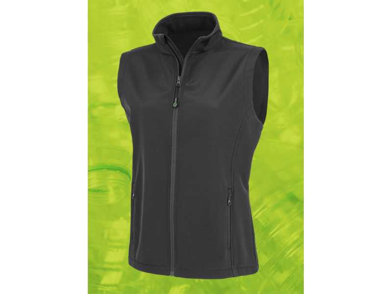 An affordable, lighter weight womens recycled softshell gilet, ideal for all decoration types and budgets made from a sustainable and superior soft feel equivalent fabric to conventional