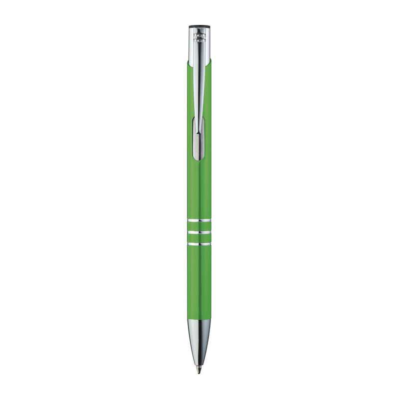 Hliníkové guľôčkové pero s klipom a kovovým povrchom. Dostupné v širokej škále farieb. Modrý atrament. o10 x 137 mm