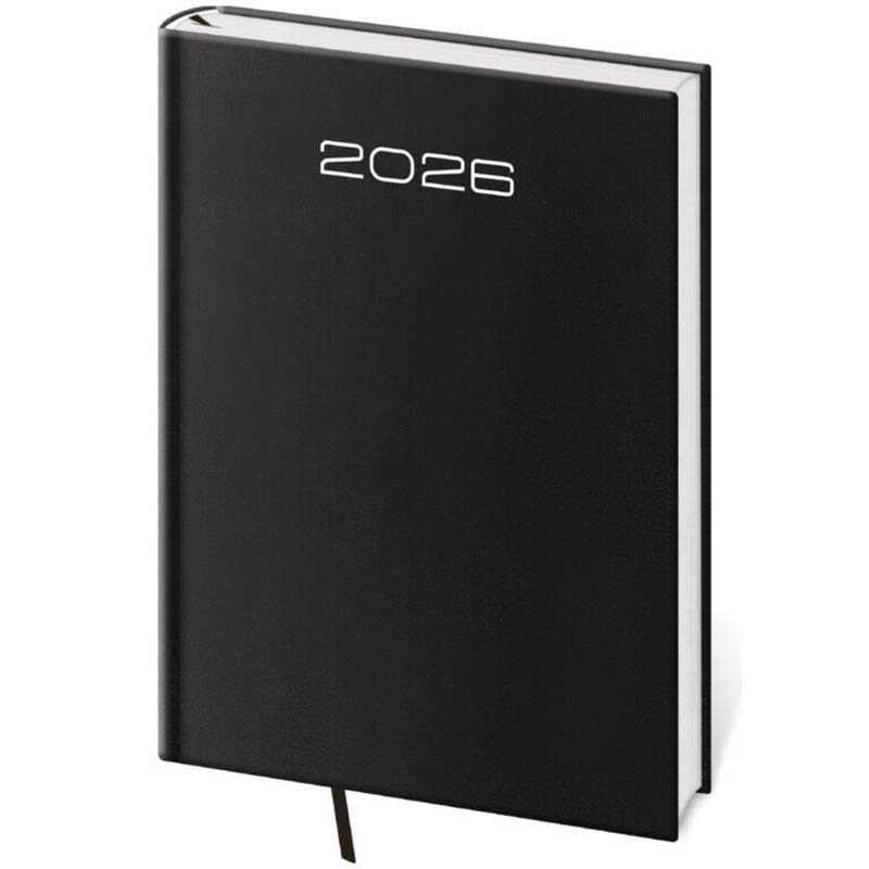 Plánovací denný diár Balakon 2026 v čiernom prevedení, doplnený o strieborný letopočet. Povrch diára si získal obľubu vďaka kvalitnému vrchnému materiálu, ktorý je extrémne odolný voči vonkajšiemu poškodeniu. Denný rozvrh s česko-slovenským kalendáriom a doplnkovou angličtinou, nemčinou, maďarčinou a ruštinou.• kalendárium od decembra 2025• mesačný plánovací kalendár 2026 • mesačný plánovací kalendár 2027 • ročný plánovací kalendár 2026–2027 • pracovný plánovací kalendár • sviatky Českej a Slovenskej republiky a a Slovenskej republiky • miesto pre osobné údaje • textilná záložka • perforované rožky • priestor na poznámkyRozsah: 352 strán. Rozmer: 15 x 21 x 3 cm. Hmotnosť: 0,38. Papier: 70 g/m2. Väzba: tuhá knižná. Kalendárium: 6 jazyčné (CZ, SK, GB, DE, HU, RU) .