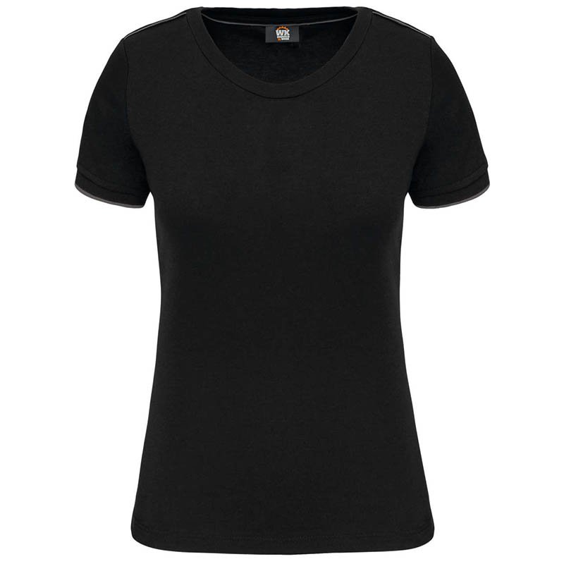 Pracovní tričko s BioBavlnou.Pracovní využití, snadná údržba.Úplet z BioBavlny a polyesteru udržuje tvar i při pracovním používání a následném praní.Lem kolem krku s elastanem.Kontrastní linky na předním i zadním díle.Kulatý výstřih..Pratelné na 60°C, vho