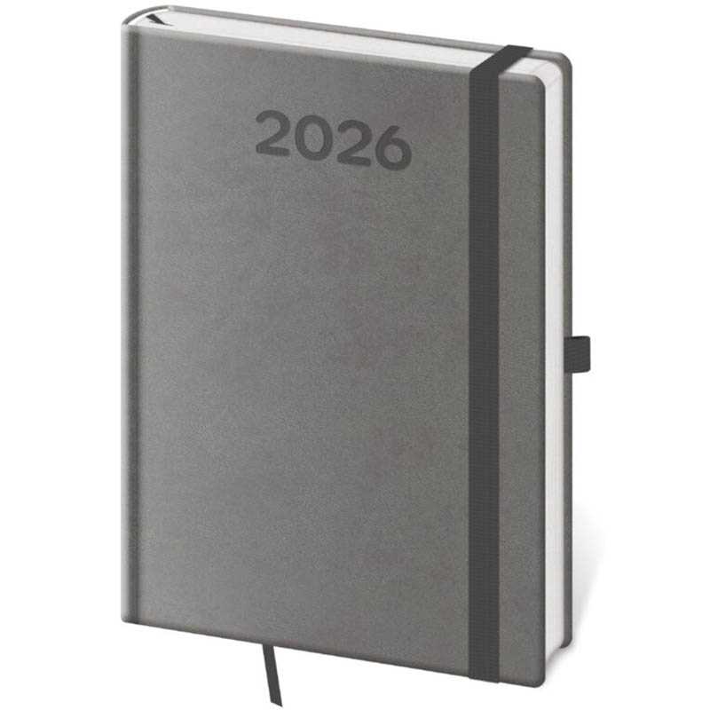 Nový rad diárov s výrazným letopočtom. Povrch má jemnú štruktúru a je vhodný pre všetky typy razieb. Týždenné rozloženie s česko-slovenským kalendáriom a doplnkovou angličtinou, nemčinou, maďarčinou a ruštinou.• kalendárium od decembra 2025 • ročný plánovací kalendár 2026–2027 • pracovný plánovací kalendár • sviatky Českej a Slovenskej republiky a medzinárodné sviatky • rozšírený zoznam českých mien • miesto pre osobné údaje • perforované rožky• priestor pre poznámkyRozsah: 128 strán. Rozmer: 9 x 15,5 x 1 cm. Hmotnosť: 0,08. Papier: 70 g/m2 krémový papier. Väzba: tuhá knižná. Kalendárium: 6 jazyčné (CZ, SK, GB, DE, HU, RU) .