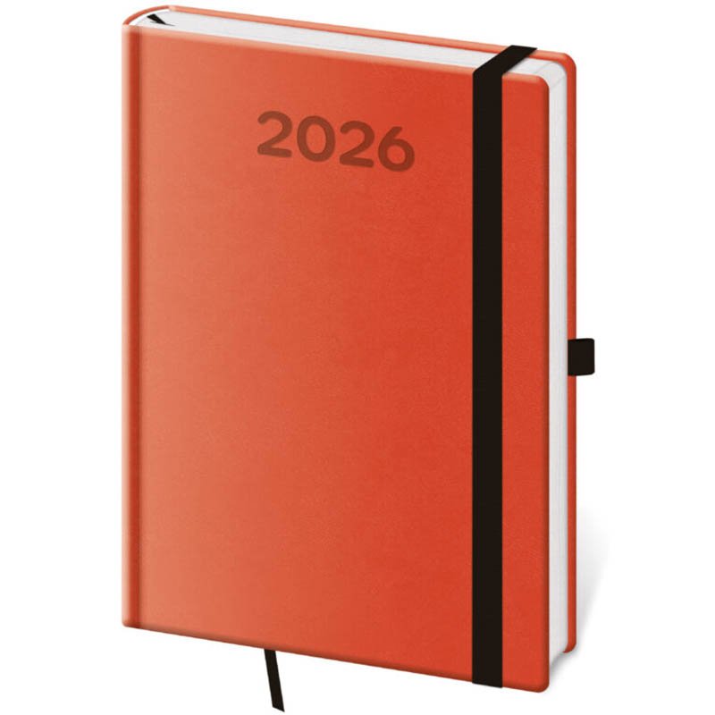 Vreckový diár Tomy 2026 v modro-červenej farbe. Klasický povrch imitujúci kožu, ktorý dopĺňa jemné prešitie. Na materiál je možné tlačiť a je vhodný pre všetky typy razieb. Týždenný rozvrh s česko-slovenským kalendáriom a doplnkovou angličtinou, nemčinou, maďarčinou a ruštinou.• kalendárium od decembra 2025 • ročný plánovací kalendár 2026–2027 • pracovný plánovací kalendár • sviatky Českej a Slovenskej republiky a medzinárodné sviatky • rozšírený zoznam českých mien • miesto pre osobné údaje • perforované rožkyRozsah: 128 strán. Rozmer: 9 x 15,5 x 1 cm. Hmotnosť: 0,08. Papier: 70 g/m2. Väzba: tuhá knižná s pútkom na ceruzku. Kalendárium: 6 jazyčné (CZ, SK, GB, DE, HU, RU) .