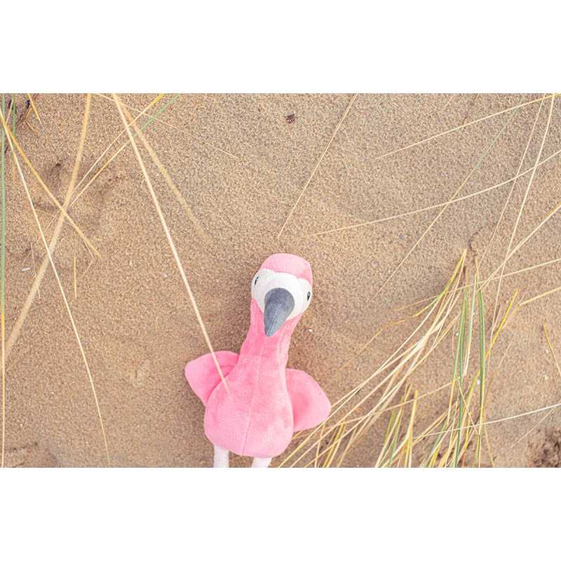 NOVINKA 2025. Plush flamingo with embroidered eyes. Including ear tag for printing.