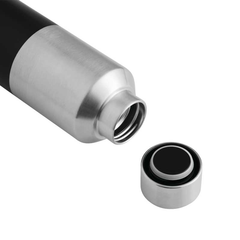Dvojstenná vákuová fľaša s karabínou a nepriepustným vrchnákom, z nerezovej ocele a objemom 600 ml. Vhodný aj ako termoska.