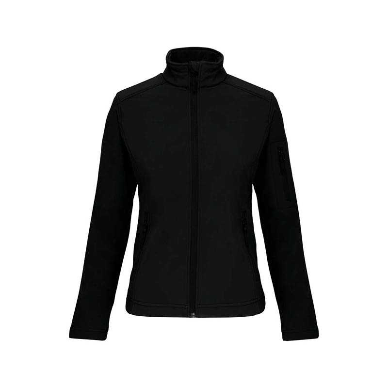 95 % polyester/5 % elastan.Softshellová trojvrstvová lepená tkanina.3 000 g/m2/24 h priedušnosť a 8 000 mm vodoodolnosť.Priedušná stredná vrstva a vnútorná termovrstva z mikroflísu.Vpredu na zips.2 bočné vrecká na zips.1 vrecko na ľavom rukáve na zips.