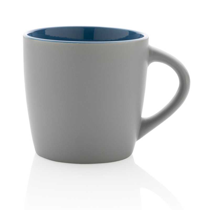 Svieži keramický hrnček s matnou vonkajšou a farebnou vnútornou časťou. Vhodné do umývačky riadu s odolnosťou až 125 umývacích cyklov pre akúkoľvek dekoračnú techniku (v súlade s EN12875-1). Balené v darčekovej krabičke. Objem: 300ml.