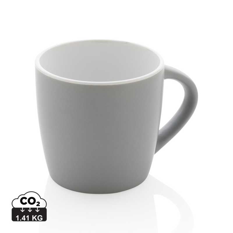 Svieži keramický hrnček s matnou vonkajšou a farebnou vnútornou časťou. Vhodné do umývačky riadu s odolnosťou až 125 umývacích cyklov pre akúkoľvek dekoračnú techniku (v súlade s EN12875-1). Balené v darčekovej krabičke. Objem: 300ml.