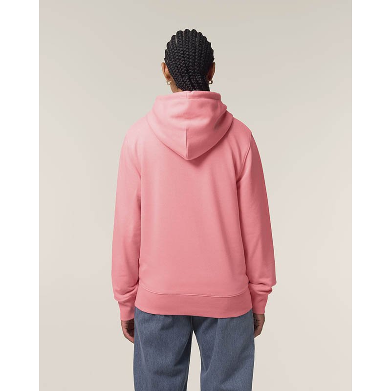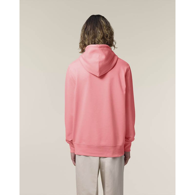 85 % organická bavlna/15 % recyklovaný polyester.Prstencovo spriadaná česaná bavlna.Rovný strih.3-vrstvový kartáčovaný flís, LSF (Low Shrinkage Fleece: predzrazený flís).1/2 kruhu vzadu.Klokanie vrecko.1 x 1 rebrovaný spodný okraj a manžety.Dvojité prešívanie na manžetách, prieramkoch, spodnom okraji a 1/2 kruhu.Podlepený výstrih vnútri na zadnej strane.Podšitá kapucňa z hlavného materiálu so zaväzovaním na šnúrku.Okrúhla šnúrka s recyklovanými kovovými koncovkami a očkami.