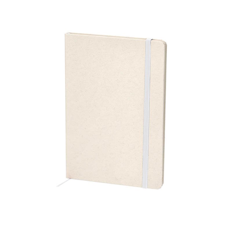 NOVINKA 2025. Note block with rigid covers made of recycled milk cartons. Includes 80 natural colored lined sheets, with an elastic band and colored bookmark. Includes Recycled Milk Carton designation on the back cover and interior sheets.Milk cartons are mostly made of cardboard and aluminum. During their recycling process, different materials from the container are separated for reuse and new use, thus contributing to the infinite journey of the circular economy. This material is characterized by its high recyclability, as well as its lightness and strength.