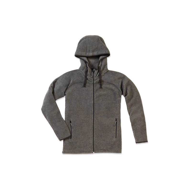 Power Fleece, raglan sleeves with shoulder yoke, all zippers with grey plastic pullers, contrast polyester bindings at sleeves, hood and inside front lap, contrast flatlock seams, contrast zipper with inside front lap, wide draw cord in contrast colour, contrast herringbone neck tape, scuba hood with center panel, side panels and side seams, both sides brushed, 2 pockets with contrast zippers. Značka : STEDMAN . Materiál : 100% polyester ; 280g/m2