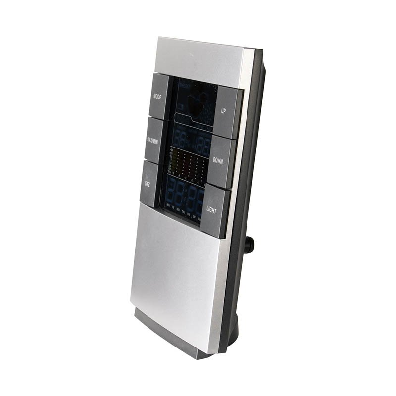 Díky této moderní meteorologické stanici nebude více problém s předpovědí počasí. Tato meteorologická stanice je teploměr, hygrometr, budík, kalendář, biometr a meteorologická stanice. Má také podsvícenou obrazovku. Logo může být vyraženo nebo vyryto na přední straně produktu.
