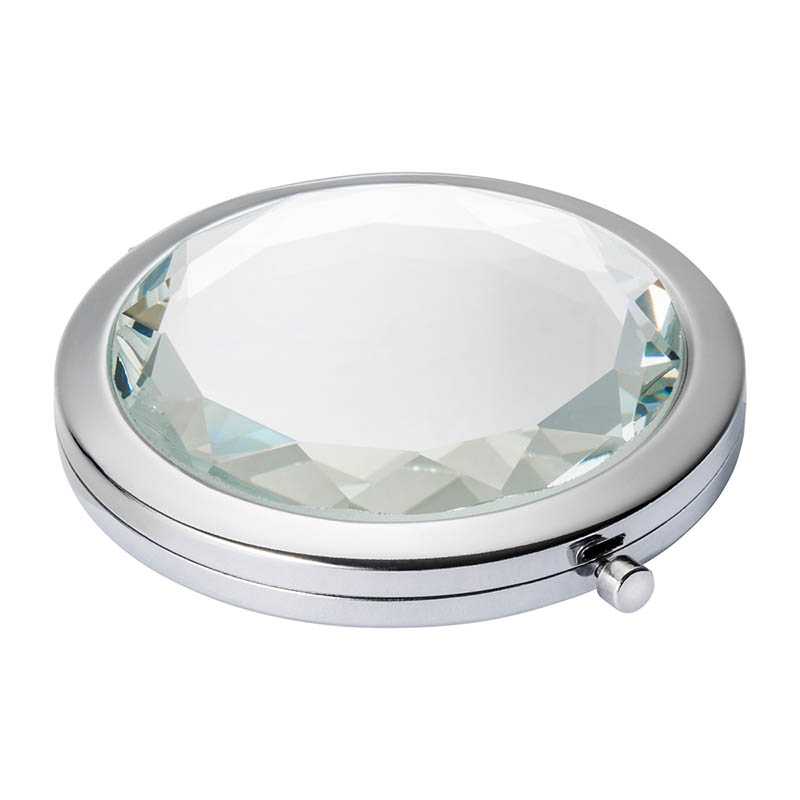 The luxurious pocket mirror with ornate glass lid is the perfect accessory for ladies who demand design and chic. The glass surface can be branded by printing with your logo and looks particularly appealing by the mirror optics. The mirror comes with a protective velvet bag.