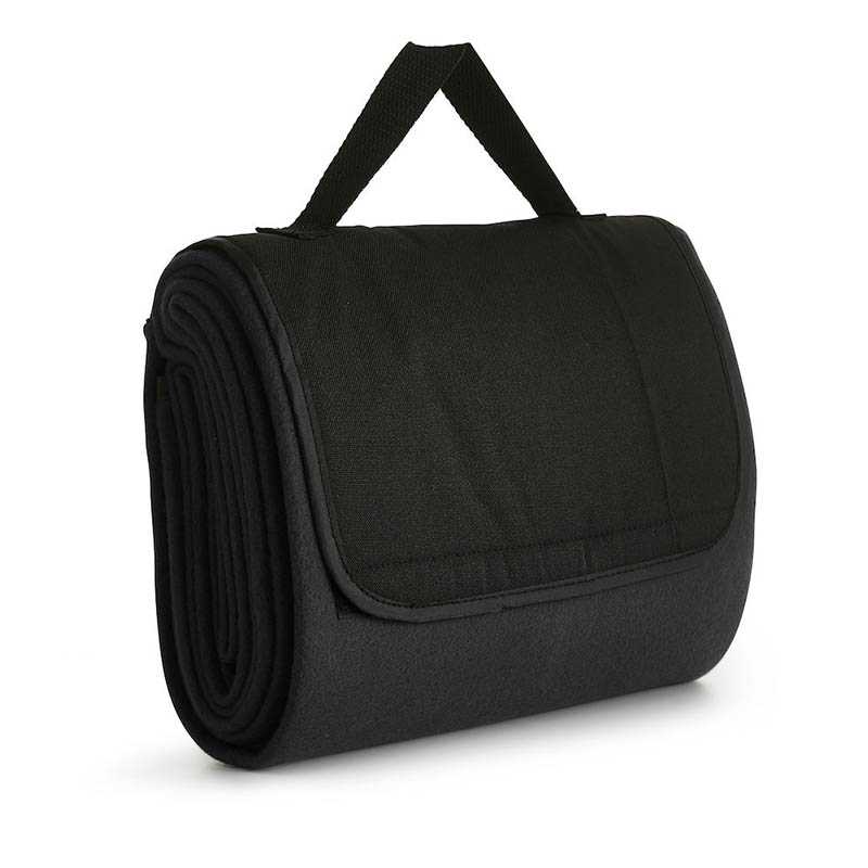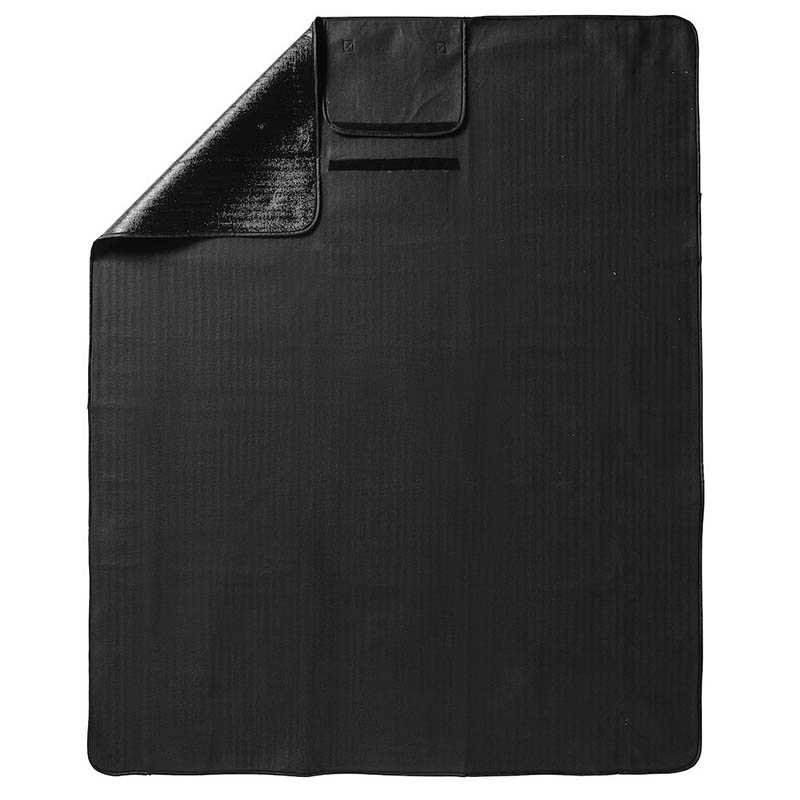 Product Fabrics: Polyester/PEVA. Description: Smart picnic blanket with a water-repellent backing. Easy to fold and roll up so it can then be carried by its handle.