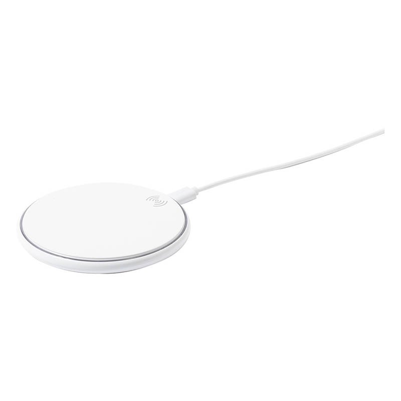 NOVINKA 2025. Wireless charger in round design. With 10W fast charge function. Non-slip base, with LED indicator for charge status. Micro USB cable included and compatible with smartphones with wireles charging technology. Presented in an attractive design box.
