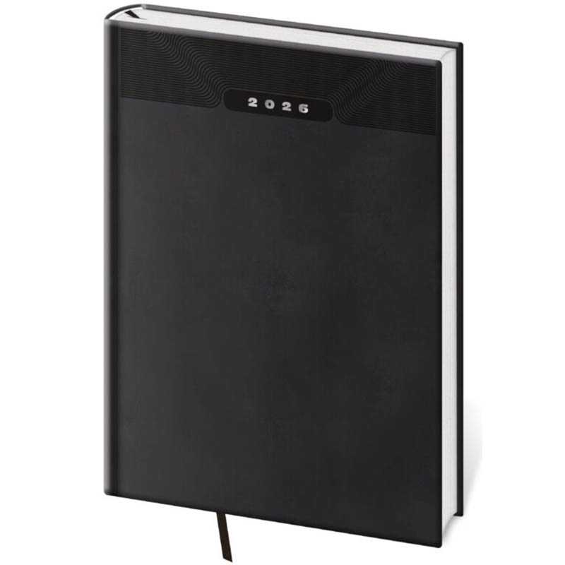 Týždenný diár Aprint 2026 v čiernej farbe. Kolekcia stavila na osvedčené farby, ktoré dopĺňa nová razba letopočtu. Týždenný rozvrh s česko-slovenským kalendáriom a doplnkovou angličtinou, nemčinou, maďarčinou a ruštinou.• kalendárium od decembra 2025• mesačný plánovací kalendár 2026 • mesačný plánovací kalendár 2027• ročný plánovací kalendár 2026–2027 • pracovný plánovací kalendár • sviatky Českej a Slovenskej republiky a a Slovenskej republiky • miesto pre osobné údaje • textilná záložka • perforované rožky • priestor na poznámky.Rozsah: 144 strán. Rozmer: 15 x 21 x 2 cm. Hmotnosť: 0,28. Papier: 90 g/m2. Väzba: tuhá knižná. Kalendárium: 6 jazyčné (CZ, SK, GB, DE, HU, RU) .