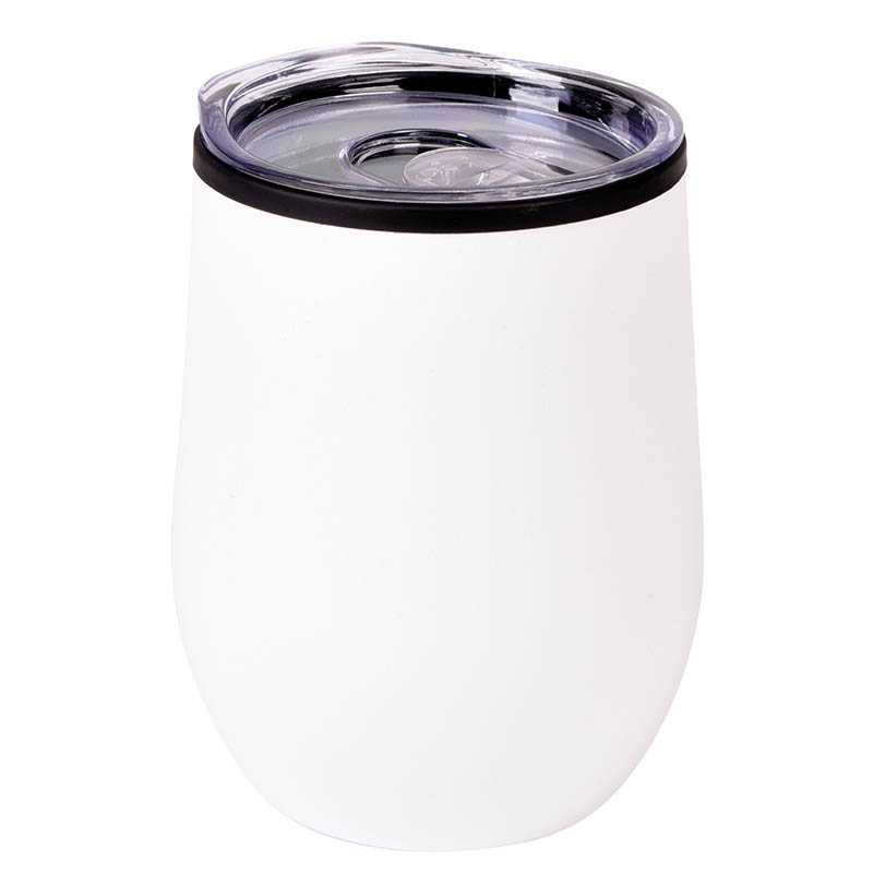 Dvoustěnný hrnek z nerezové oceli s vnitřkem z PP a průhledným PS víčkem. Objem: 350 ml.