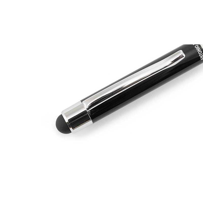 Kovové guľôčkové dotykové pero s modrou náplňou v čiernej krabičke. Značkový produkt Antonio Miro.