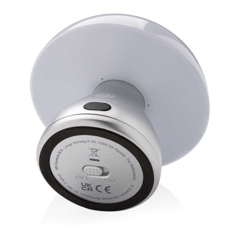 USB dobíjateľná prenosná stolná lampa vhodná na pracovný stôl alebo kamkoľvek v domácnosti. Ovládanie dotykom. Vyrobená z RCS recyklovaného ABS a hliníka. RCS (Recycled Claim Standard) je globálny štandard, ktorý umožňuje overiť použitie recyklovaného materiálu v produkte naprieč celým dodávateľským reťazcom. Celkový podiel recyklátu podľa váhy produktu: 84%. Doba svietenia až 18 hodín na jedno nabitie. Plné nabitie už za 2 hodiny. Možnosť prepnutia medzi 2 módmi svietenia (teplé a studené svetlo). Nabíjanie cez USB C. Balené v FSC® darčekovej krabičke. Vodeodolnosť IPX 4.