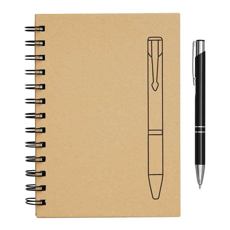 Zápisník veľkosti A5 s pláteným vzhľadom obalu, čiernym gumovým uzáverom a záložkou. Obsahuje 160 linajkových strán.