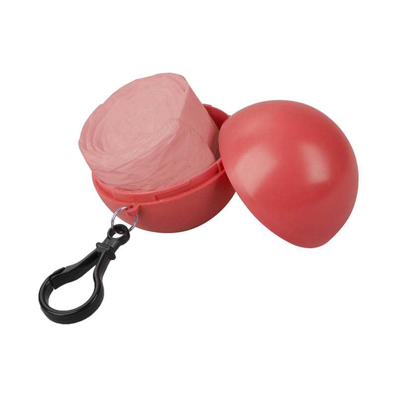 PVC Poncho in an ABS plastic ball with a snap hook attachment.