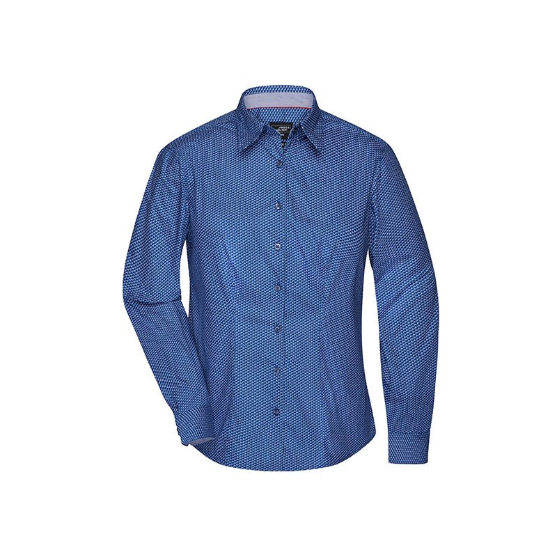 Dámská košile se vzorkem a vsazenými barevnými detaily.Vysoce kvalitní popelín, easy-care, snadné žehlení.Kontrastní barevné detaily na rubu límce a manžet.Kontrastní knoflíky .5/4 . (ks v jednom sáčku / celkem ks v kartonu).