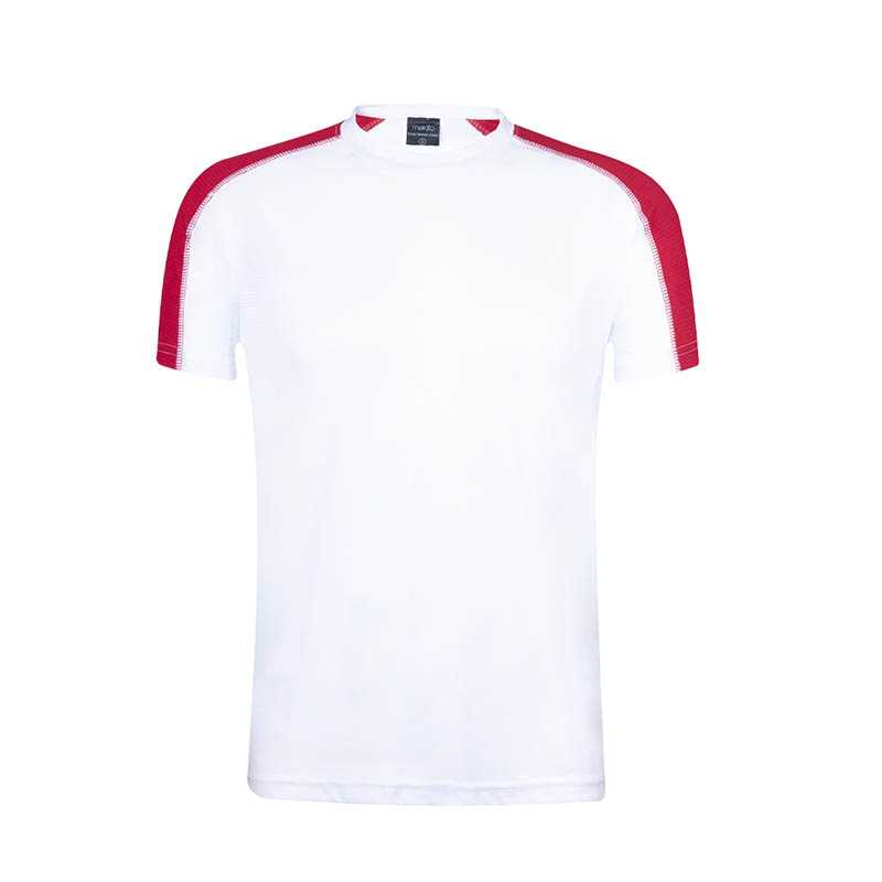 NOVINKA 2025. Technical t-shirt for adult in 100% breathable polyester material of 135g/m2. Design in white with reinforcement seams and brightly colored sides. Available in sizes S, M, L, XL, XXL.