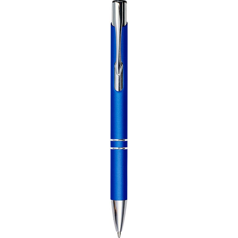 Aluminium ballpen with rubber coating. Blue ink.