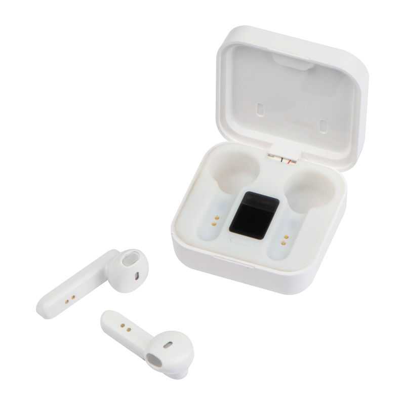 Bezdrôtové bluetooth slúchadlá s aktívnym potlačením hluku s funkciou hands-free volania v nabíjačke z ABS plastu. Vrátane USB nabíjacieho kábla.