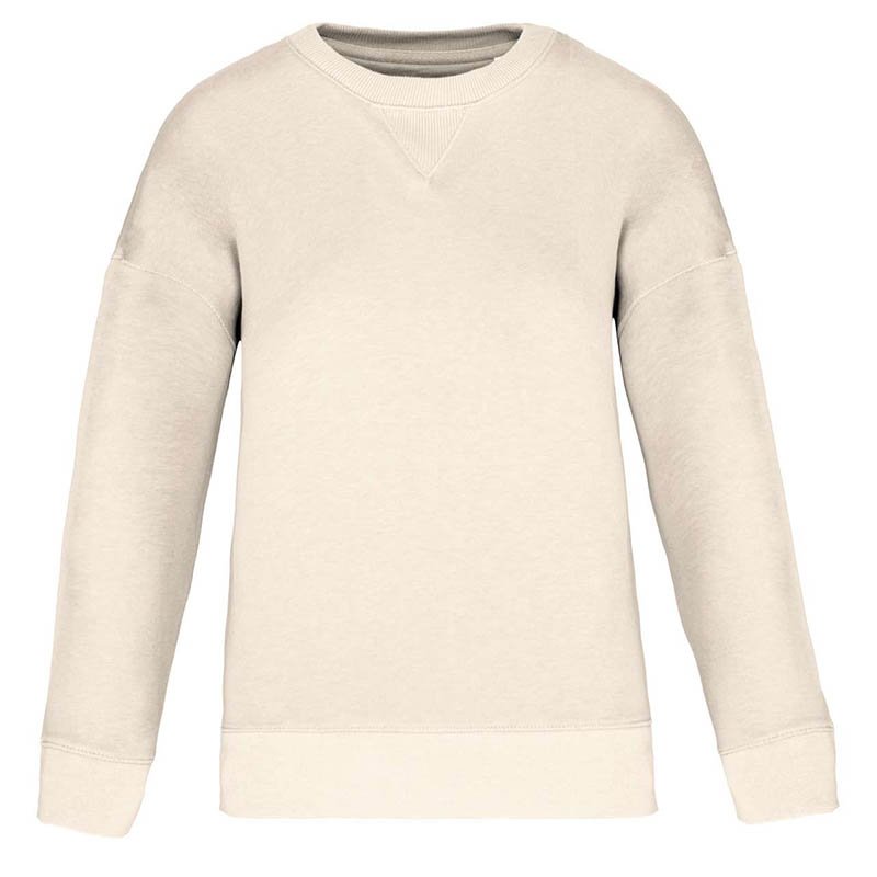 Sweatshirt with round neck and brushed lining. 2x2 ribbing on the collar edge, end of sleeves and bottom hem. Decorative seams in overlock knit set in a tone-in-tone feature. Ladies fit.