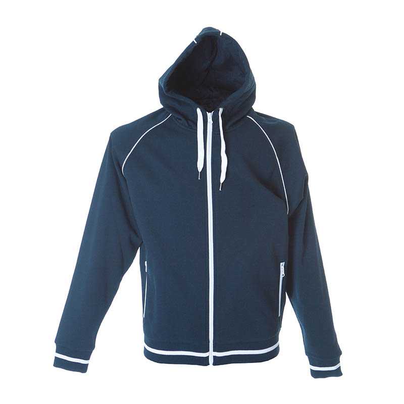 "Hooded cotton – polyester sweater - Dry fabric - Lined hood - Full zip with waterproof cover - Zip-pockets covered - Colored tape inside collar - Ribbed cuffs and band at the waist Značka : JAMES ROSS . Materiál : Bavlna / polyester