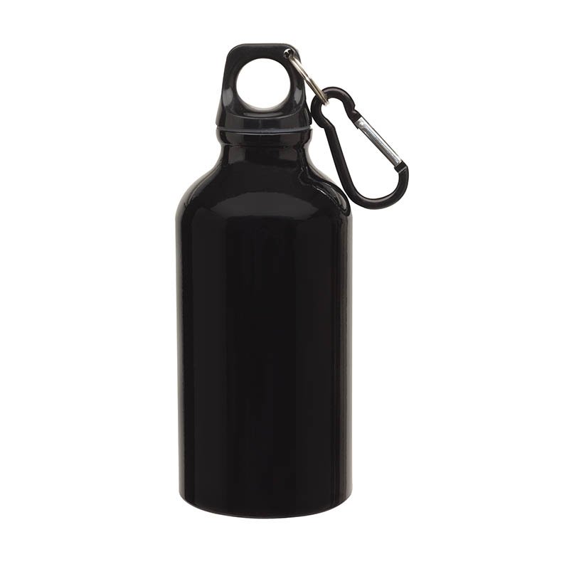 Fľaša z recyklovaného hliníka s karabínkou z recyklovaného hliníka, 400 ml.