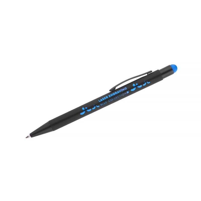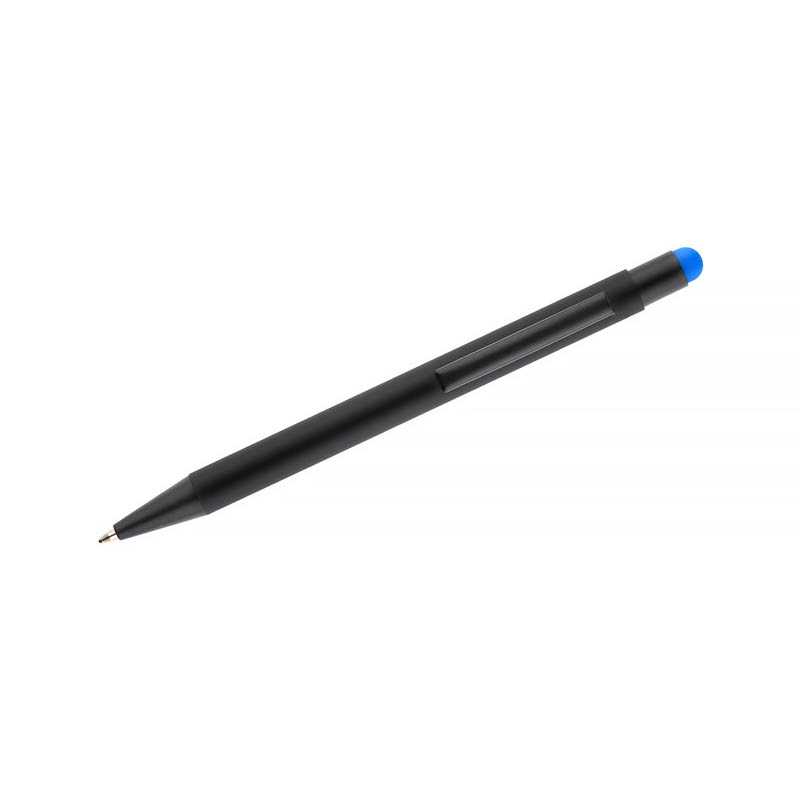 Hliníkové dotykové guľôčkové pero s eloxovaným telom, s modrou náplňou.