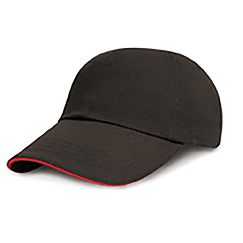 ·350 gsm ·100% cotton, heavy brushed (drill) ·6 panels ·Eyelets ·Adjustable clip fastening ·Low stylish profile. Značka : RESULT . Materiál : 100% heavy brushed cotton drill, 350g