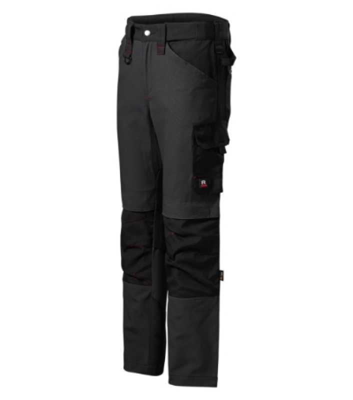 povrchová úprava odpudzujúca nečistotu, tvarovaný elastický pásový golier, klin v rozkroku so 6 % elastanu, 10 multifunkčných vreciek, vrecká pre vloženie chráničov kolien, odvetrávanie v zadnej časti kolien, plastové "D" pútko, pútko na kladivo, vysoko o