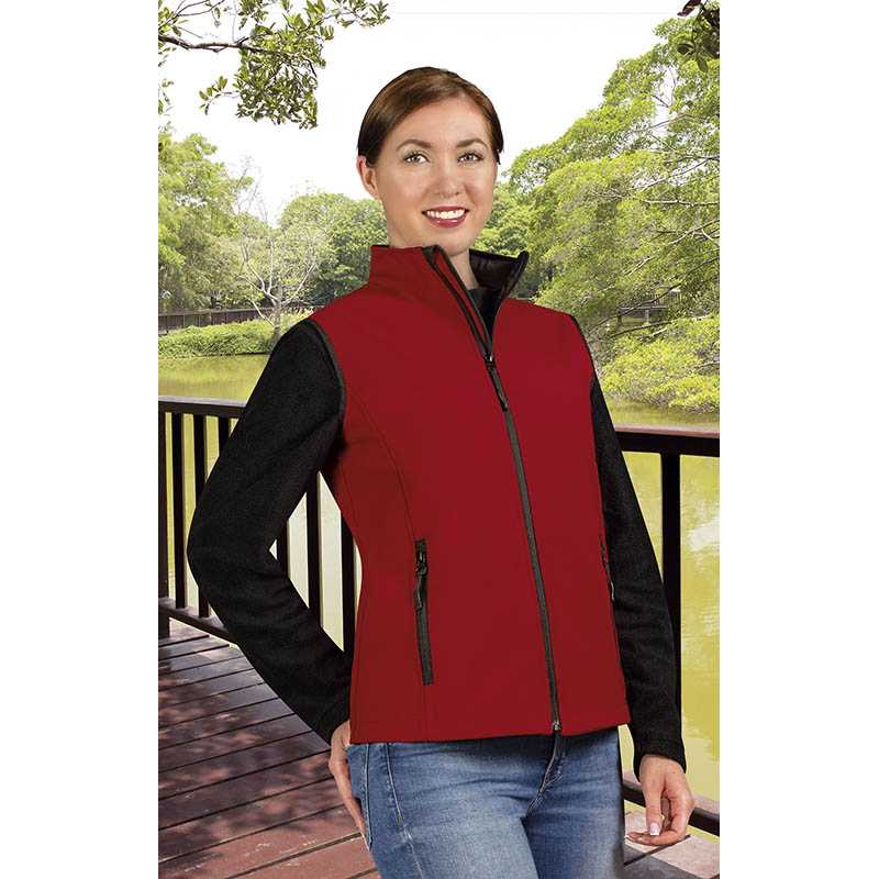 Softshell vest based on same as the jacket in bounded fabric with stretch capabilities. Two coloured zipper at front and pockets. Possible to add zip pullers in other colours matching the company logo. // 96% POLYESTER/ 4% SPANDEX, BRUSHED INSIDE // 400 RED, 600 NAVY, 632 OCEAN BLUE, 728 FRESH GREEN, 900 BLACK, 935 STEEL GREY, 100 WHITE XS - XXL
