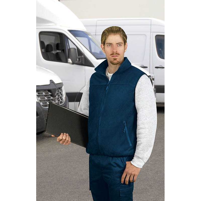 "Microfleece vest - 100% polyester - One pocket with zip on chest - Two pockets with zip - Elasticized fabric on armholes - Elasticized fabric at bottom Weight : 185 g/m2"