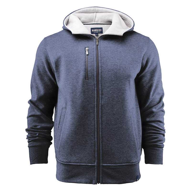 Hooded jacket in double face with fleece on the inside. Metal zip front and right chest pocket. Rib at bottom hem and sleeve cuffs. Material: 100% cotton shellfabric, Inside: 100% polyester inside, 320 g/m2 Colors: 131 grey melange, 406 red melange, 606 dark blue melange, 600 navy, 900 black Size: S–XXXL