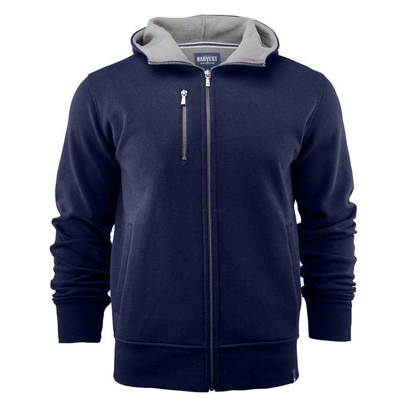 Hooded jacket in double face with fleece on the inside. Metal zip front and right chest pocket. Rib at bottom hem and sleeve cuffs. Material: 100% cotton shellfabric, Inside: 100% polyester inside, 320 g/m2 Colors: 131 grey melange, 406 red melange, 606 dark blue melange, 600 navy, 900 black Size: S–XXXL