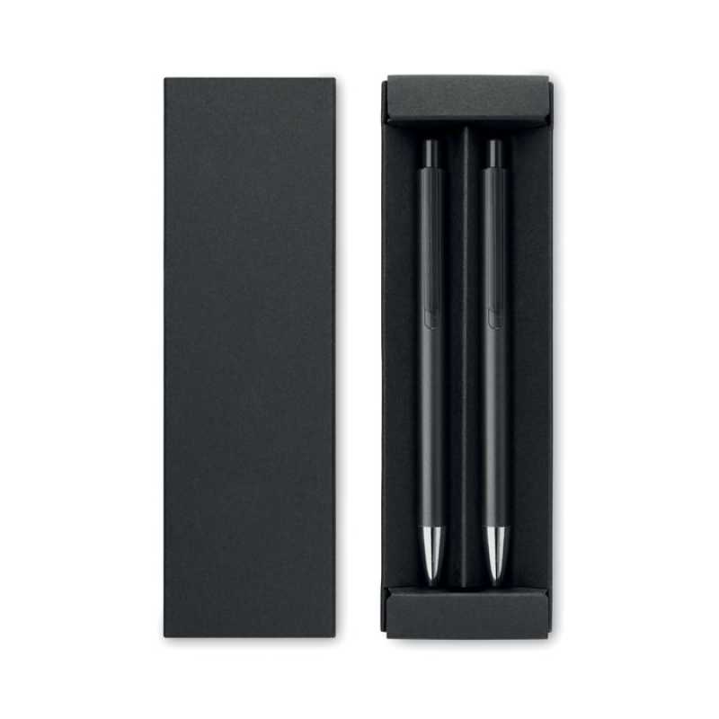 Aluminium writing set consisting of a lacquered ballpen with black ink and a mechanical pencil. Packaged in a metal pen case. Provided with German Dokumental Ink.