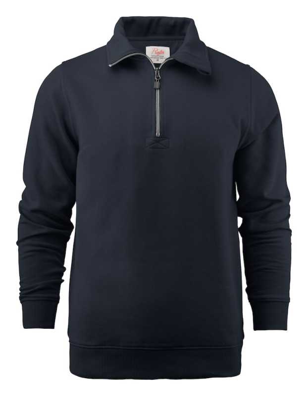 Sweatshirt with collar halfzip. 2x2 rib ending at sleeves and bottom hem. Material: 60% Cotton, 40% Polyester Colors: 400 red, 600 navy, 632 ocean blue, 728 fresh green, 900 black, 935 steel grey, 100 white, 120 grey melange Size: XS–5XL