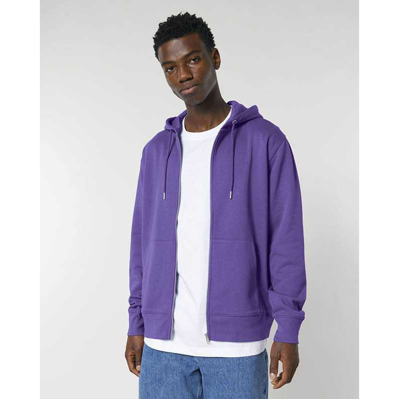 Power Fleece, raglan sleeves with shoulder yoke, all zippers with grey plastic pullers, contrast polyester bindings at sleeves, hood and inside front lap, contrast flatlock seams, contrast zipper with inside front lap, wide draw cord in contrast colour, contrast herringbone neck tape, scuba hood with center panel, side panels and side seams, both sides brushed, 2 pockets with contrast zippers. Značka : STEDMAN . Materiál : 100% polyester ; 280g/m2
