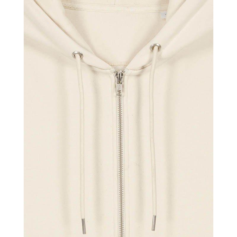 NOVINKA 2025. Set-in sleeves Self fabric lined hood Covered metal zipper at center front Round drawcords in matching body colour with closed metal tipping Metal eyelets 1x1 rib at sleeve cuffs and bottom hem Kangaroo pocket Double needles topstitches at a