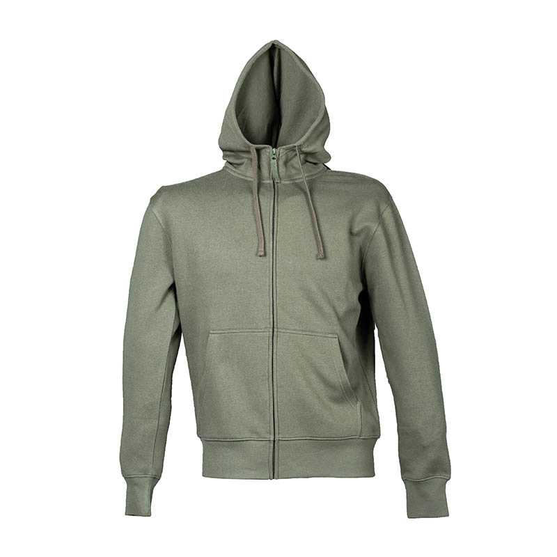 65 % polyester/35 % bavlna.Kartáčovaný flís.Zapínanie na zips.Kontrastné raglánové rukávy a kapucňa.Kapucňa podšitá sieťovým úpletom v rovnakej farbe.Klokanie vrecká s fluorescenčným vreckom na telefón.Prístup pre slúchadlá.2 x 2 dvojvrstvové rebrované manžety a spodný okraj.Certifikát STANDARD 100 podľa OEKO-TEX®N° CQ1007/7, IFTH.