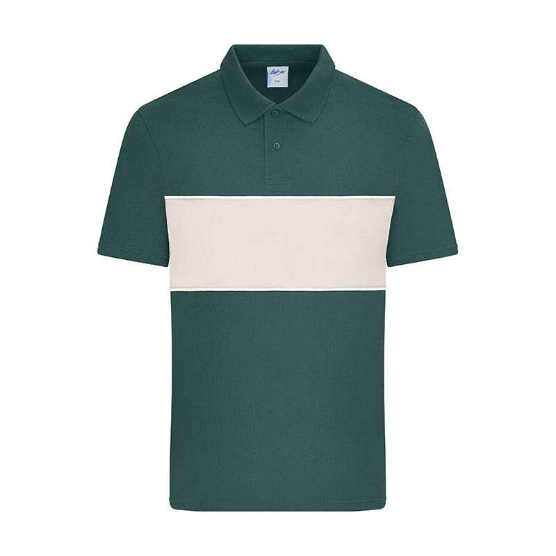 NOVINKA 2025. Set-in sleeve Flat knit rib on collar and sleeve hem Inside heavy single jersey back neck tape Front inserted placket with 2 buttons in matching body colour Slit and bartack finish at side seam hem Double needle topstitch at shoulder seams