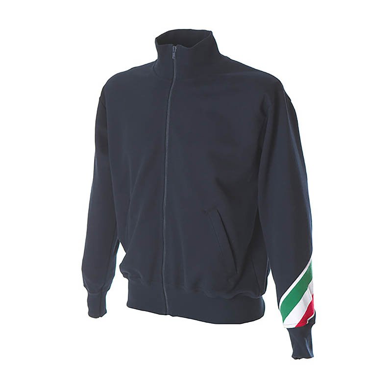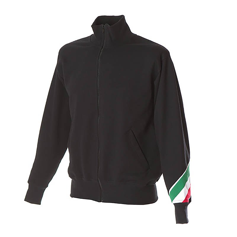 "Sweater made in Italy 100% Cotton - Ribbed collar - Full zip - Italian flag on the arm - Two pockets - Ribbed cuffs and band at the waist 8 cm h - Stitching Značka : JAMES ROSS . Materiál : 100% bavlna